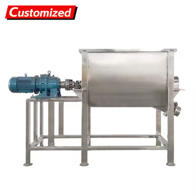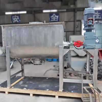 High-efficiency stainless steel ribbon mixer designed for blending various powder products including plastics, chemicals, food, and fertilizers. Features porous design and customizable specifications.